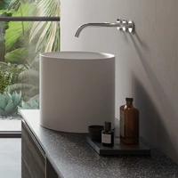 RAK Ceramics SKIN Umywalka slim nablatowa okrągła 42 cm White Concrete - Efekt kamienia