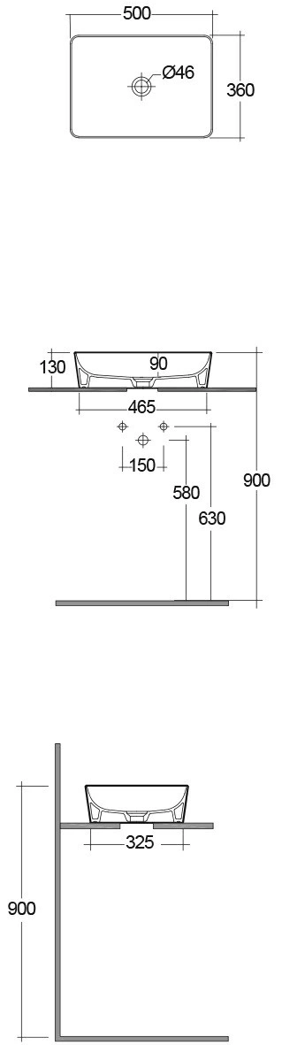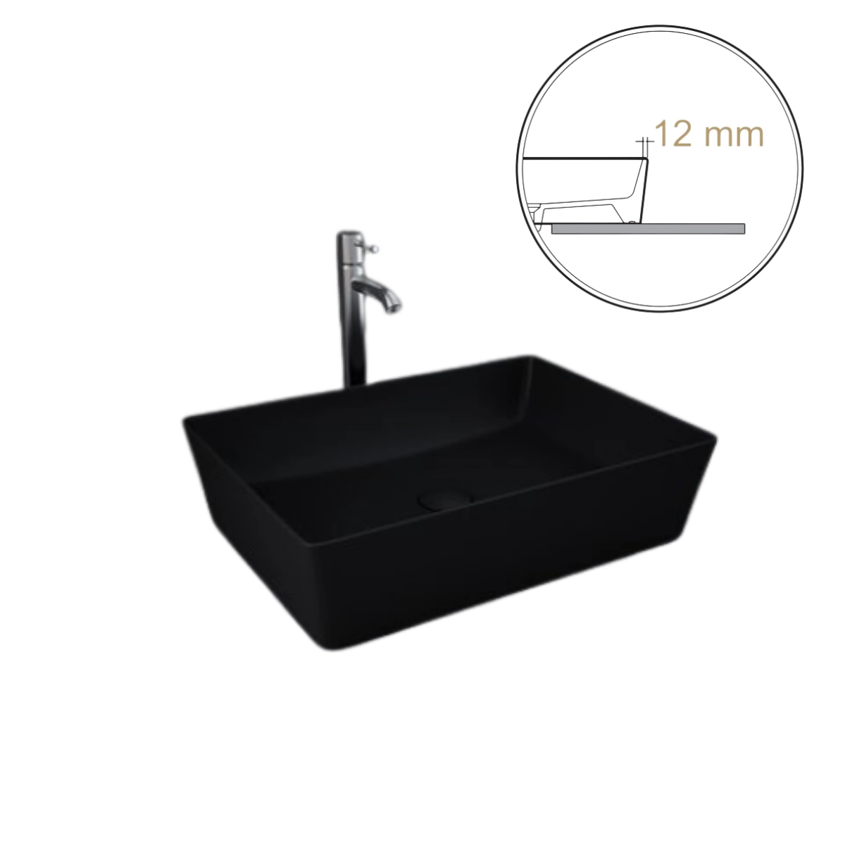 FEELING Umywalka nablatowa prostokątna 50x36 cm czarny mat (504) (Wycofywana, starsza wersja rant 12mm)