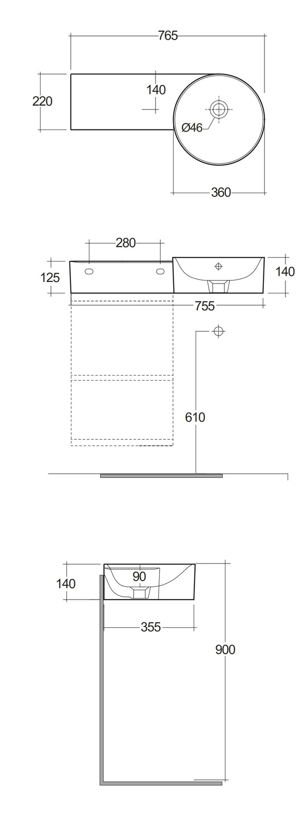 Zestaw PETIT Umywalka okrąg blatL otworem, szafka JOY MOK