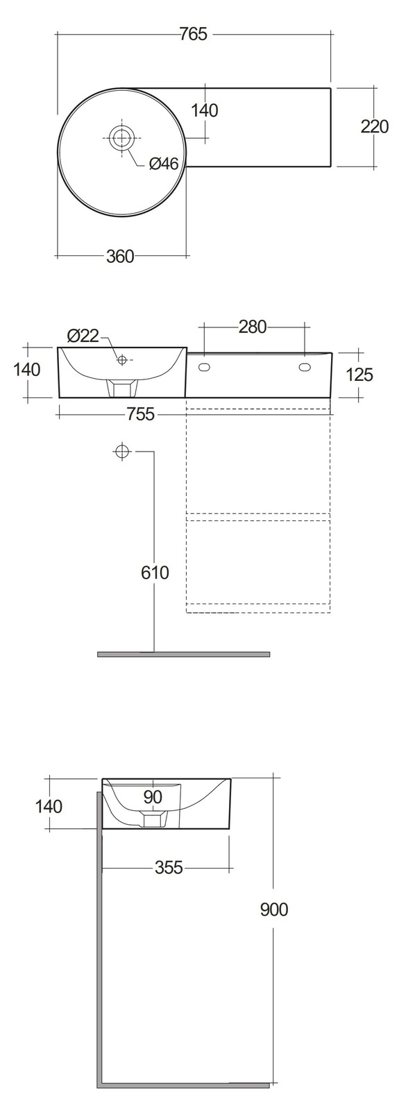 Zestaw PETIT Umywalka okrąg blatL otworem, szafka JOY MOK
