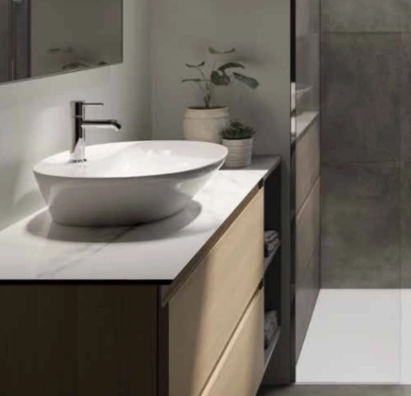 RAK - DES to kolekcja, na którą składają się umywalki owalne nablatowe, umywalki wolnostojące o wyjątkowych opływowych kształtach oraz prostokątne umywalki nablatowe o minimalistycznych, subtelnych liniach, które mogą być zestawione z szafkami JOY i JOY UNO czy mogą być łączone z metalowymi stelażami, miski WC i bidety o opływowych kształtach.