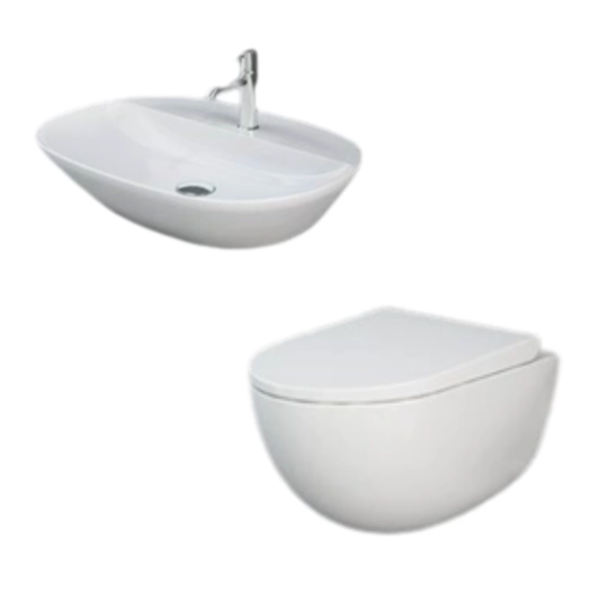 Zestaw DES Miska WC podwieszana z deską W/O i Umywalką Nablatową VARIANT owalną 60x42 cm biały połysk
