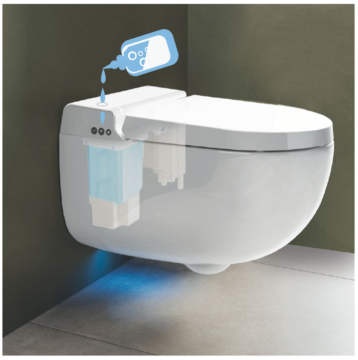 - Przyjemne i bezpieczne mycie: regulacja i zapisywanie temperatury wody, intensywności natrysku i położenia dyszy.