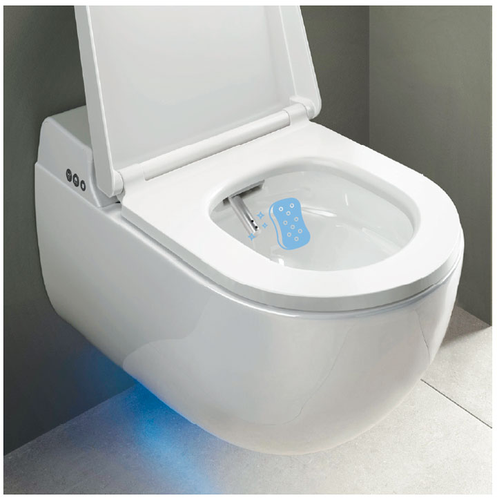 Zaprojektowane specjalnie z myślą o potrzebach kobiet. Miękki strumień wody, zapewnia delikatne mycie. Natrysk i dysza czyszczą się automatycznie przed i po każdym użyciu.