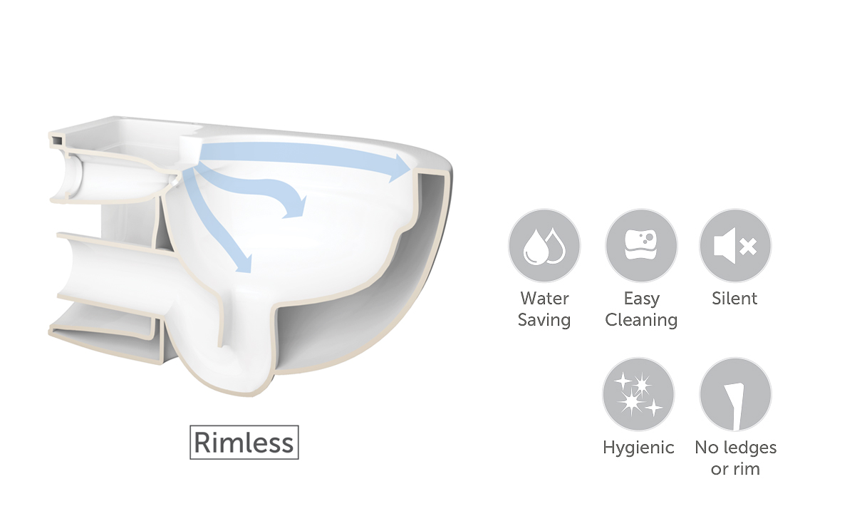 Miski WC bez kołnierza umożliwiają skuteczne usunięcie szkodliwych bakterii. Brak rantu pozwala dokładnie wyczyścić miskę WC na całej jej powierzchni. Woda w miskach WC bezrantowych dystrybuowana jest po całym obwodzie misy, dokładnie i równomiernie wypłukując wszelkie zabrudzenia z całej powierzchni wnętrza misy. Nie ma przy tym ryzyka, że woda wydostanie się na zewnątrz. Proces spłukiwania jest więc skuteczny i precyzyjny. Wydajność systemu przekłada się na oszczędność wody.