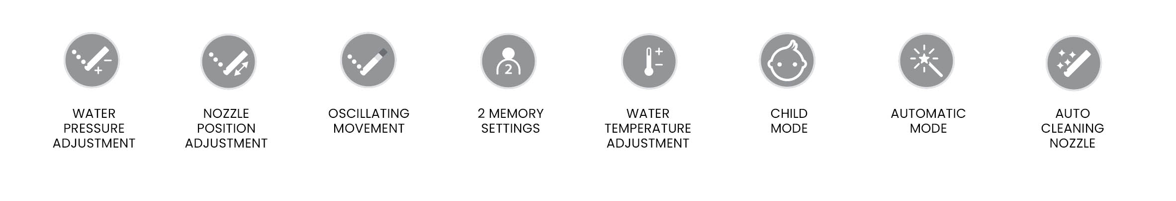 Podczas mycia tylnego i kobiecego można włączyć tryb oscylacyjny, naciskając ponownie przycisk. Strumień dyszy porusza się do wewnątrz i na zewnątrz, dokładnie czyszcząc większe obszary, zapewniając uczucie absolutnej czystości.