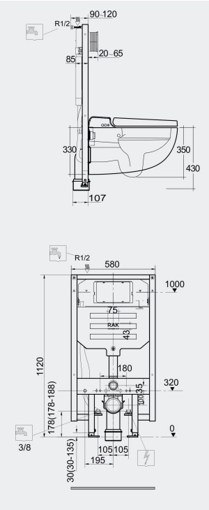 Zestaw RAK Ceramics CLEON PROTEK Miska WC podwieszana Rimless & Deska WC z funkcją bidetu SMART ze stelażem podtynkowym RAK-CLEON